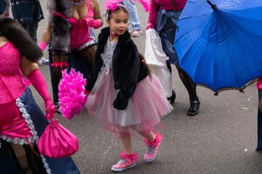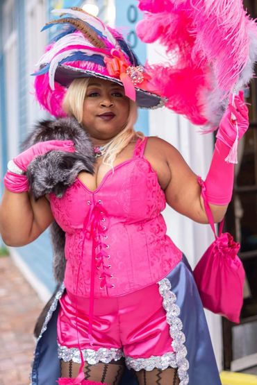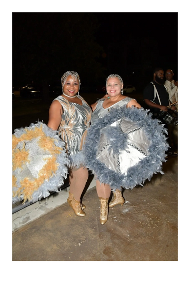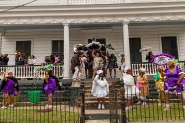 The Baby Dolls were created by two women of color, Leola Tate and Beatrice Hill in Black Storyville. This corner located in the back-a-town was the red-light district for the destitute, and Black men, who banned from patronizing the brothels of Storyville, due to the Black Codes, and Jim Crow legislation. Not only were people of color prohibited from areas like Storyville but, they were not allowed to participate in Carnival, so they created their own, birthing the Baby Doll tradition. Baby dolls were known for being fierce women who carried sticks, threw money at male onlookers, smoked cigars, and donned knives in their garters. They paraded through their neighborhoods making their own joy in spite of a society that continuously robbed them of their humanity. Over twenty groups continue to pay homage to the original Cribs, and many of the women are working professionals with their own businesses and careers. You can find the dolls dancing throughout the city at festivals, parades, throughout the Carnival Season, and of course, on Mardi Gras Day!